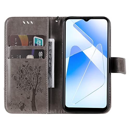 Zchen Cover per Oppo A16s, Cover Oppo A54s, Custodia Cover Protettiva in Cuoio Flip Libro Portafoglio Resistente Antiurto con Supporto per Oppo A16s/A16/A54s (Gatto-Grigio)