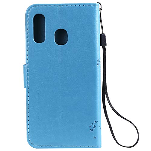Zchen Cover per Samsung Galaxy A40, custodia a portafoglio in pelle PU, a portafoglio, pieghevole, con coperchio pieghevole, per Samsung Galaxy A40 (gatto blu)