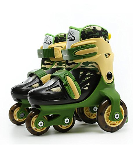 ZCRFY Pattini A Rotelle Pattini in Linea Regolabili Bambini Principianti Ragazzi Ragazze Flash Ruote Doppie Scarpe da Pattinaggio Set 2-6 Anni,Camo-M