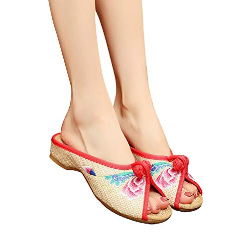 ZCRFYY Sandali e Pantofole Morbidi e Comodi Pantofole da Donna Casual Ricamate in Stile Etnico Scarpe con Imbottitura in Lino a Bocca di Pesce in Stile retrò,Bianca,40