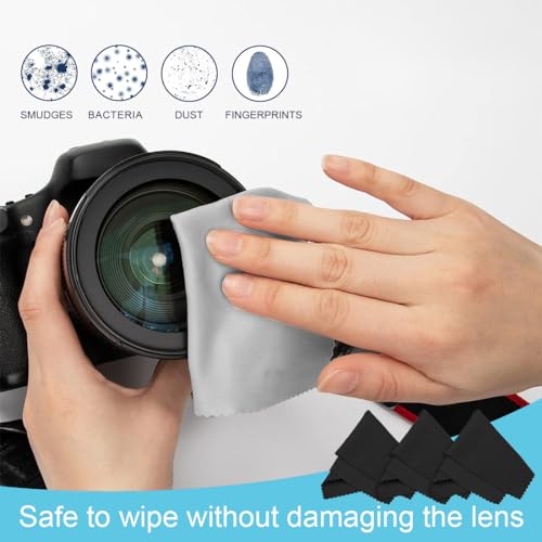 COMPATTO E CONVENIENTE: Con una dimensione di soli 14,5 x 17,5 cm, i nostri panni in microfibra per la pulizia degli occhiali sono abbastanza piccoli da stare in qualsiasi tasca, borsa o custodia per occhiali. Perfetto per gli spostamenti!