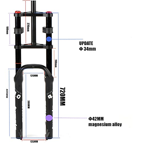 ZCVB Forcella Ammortizzata Fat Tire MTB Forcelle Anteriori Sospensione DH Air Doppia Spalla 26 X 4,0 in per Mountain Bike Snow Beach XC Ammortizzatore, Supporta I Freni A Disco,34mm b