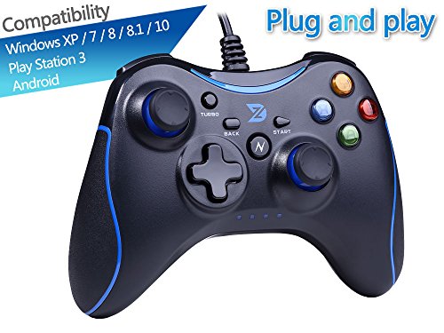 ZD-N Gaming USB Collegata Controller Gamepad Joypad Joystick Per PC (Windows xp / 7 / 8 / 8.1 / 10) & playstation 3 & Androide & steam - non sostenere xbox 360 / One - [Blu e Nero]
