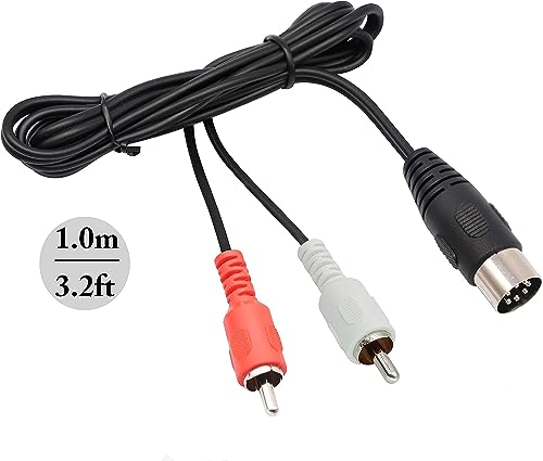 ZdyCGTime MIDI Din 7Pin a 2 RCA Prolunga,Da 7 pin DIN Maschio a 2 RCA Maschio Cavo di prolunga audio,Compatibile con Bang & Olufsen B & O, Naim, Quad. Sistema stereo. (1 M / 3 Piede)