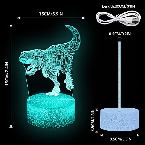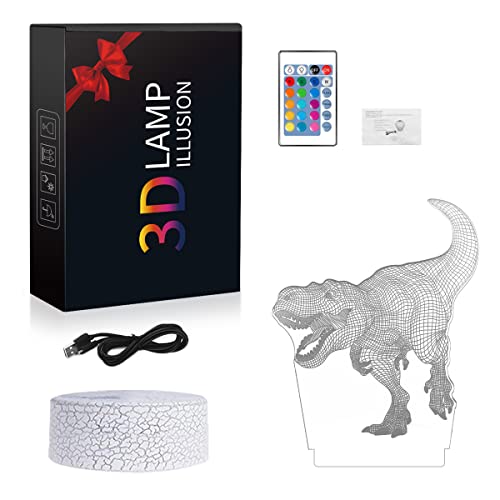 Zeaky Lampada 3D Dinosauro Bambini, Luce Notturna Dinosauro con 16 Cambiamenti di Colore Telecomando, Regalo Dinosauro per Ragazzi Ragazze, Regalo di Natale