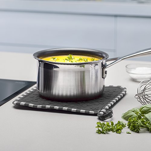 Zeal Sottopentola Quadrata in Silicone a Quadretti e Supporto per pentola Calda, Cotone, Grigio, 34 x 28 x 1.5 cm