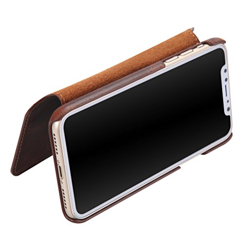 Zeattain Cover iPhone X, Bestsky iPhone X Portafoglio Cuoio di Vera Pelle Retro Raccoglitore Flip Libro AntiGraffio Caso Protezione Case Custodia per iPhone X, Marrone Scuro