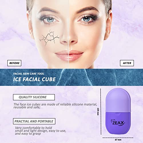 ZEAX Rullo di ghiaccio per viso e occhi, strumenti per la cura della pelle, trattamento facciale riutilizzabile per stringere e tonificare la pelle e desoffia la zona degli occhi, (viola)