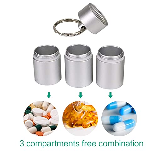 Zeaye - Scatola per medicine portatile con 3 scomparti, impermeabile, per uso esterno, con portachiavi, ideale per viaggi e campeggio