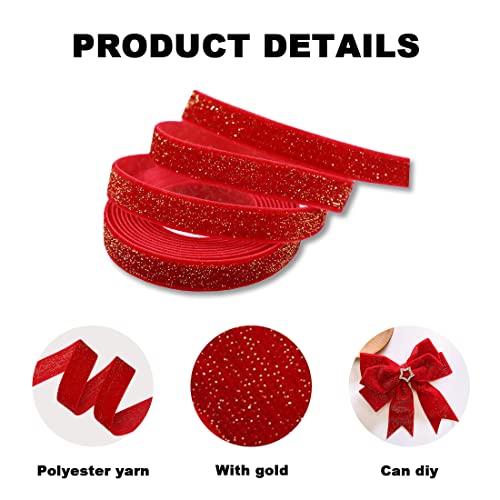 【Nastro rosso】 Il raso è largo 10 mm e lungo 9 metri. NASTRO DI VELLUTO DI TESSUTO DI ALTA QUALITÀ - Il nastro è realizzato in tessuto di velluto al 100% con glitter dorati, superficie liscia e morbida, lucida e lussuosa al tatto, per una trama bella ed elegante. Un lato del nastro è pieno di lucentezza e il rosso è molto luminoso, il che lo rende la scelta migliore per l'artigianato.