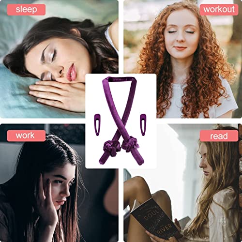 Zeayebsr Set per arricciacapelli pigro,Set da 5 pezzi bigodino per capelli mossi,Heatless Curling Ribbon And Scrunchies,Curling Tiara,strumento per lo styling dei capelli fai-da-te per capelli(Viola)