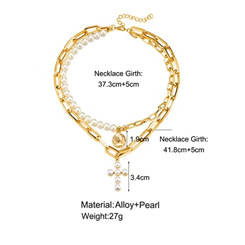 【Design originale】 Puoi ottenere una collana a doppio strato e un paio di orecchini di perle. La collana con pendente a croce di perle è regolabile con estensioni negli anelli intermedi. La chiusura a moschettone rende facile indossare e togliere la collana. La catena di monete a strati è leggera e comoda da indossare.