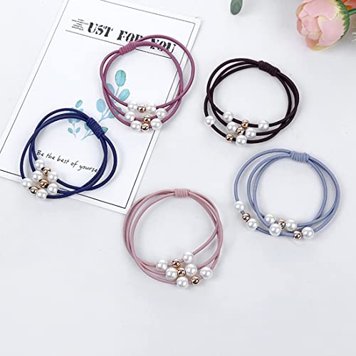 Zeayebsr Confezione da 10 fasce di perle per capelli spessi e sottili coda di cavallo a strati per donne e ragazze Accessori per lo styling coreani con perline vintage (5 colori)
