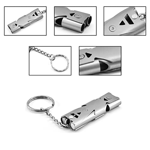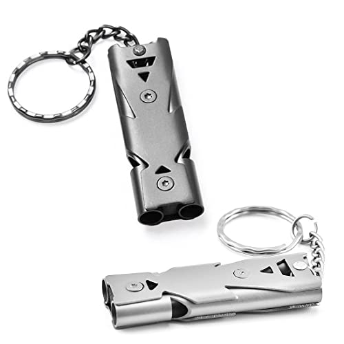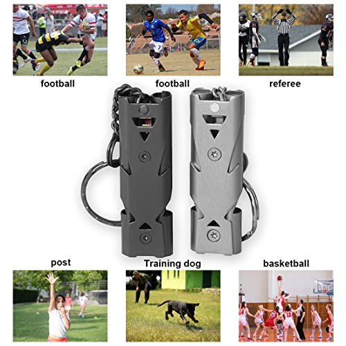 Zeayebsr Fischietto di emergenza a 2 pezzi in acciaio inossidabile Fischietto ad alto segnale in decibel, fischio portachiavi di emergenza da 150 dB per la sopravvivenza all'aperto(Nero e grigio)