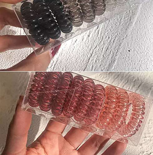 Zeayebsr 18 Pezzi Fasce Elastici per Capelli a Spirale plastica, multicolore Elastici per capelli in plastica a spirale, Elastici spirale Cavo telefonico per donne e ragazze,Trasparente 18 pezzi