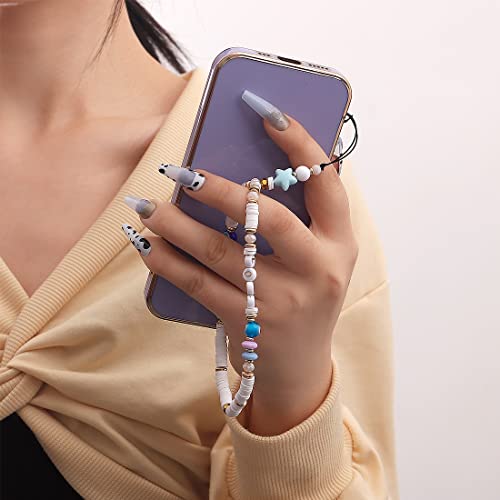 Zeayebsr 1 Pezzo Bianco Bohemian Anti-Lost Cell Phone Chain Cintura per Cellulare Retro Nuova Collana di Perle acriliche Collana di Perle Colorate Charm per Cellulare Catena per Gioielli da Donna