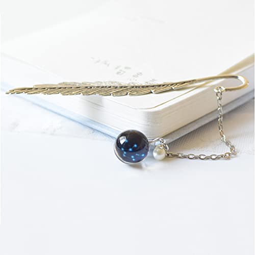 Zeayebsr Segnalibri in Piume di Metallo 2 Pz. Segnalibro classico retrò, a forma di piuma con perline luminose, motivo costellazione, regalo ideale per lettori, donne e bambini