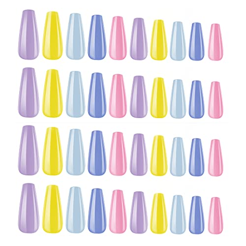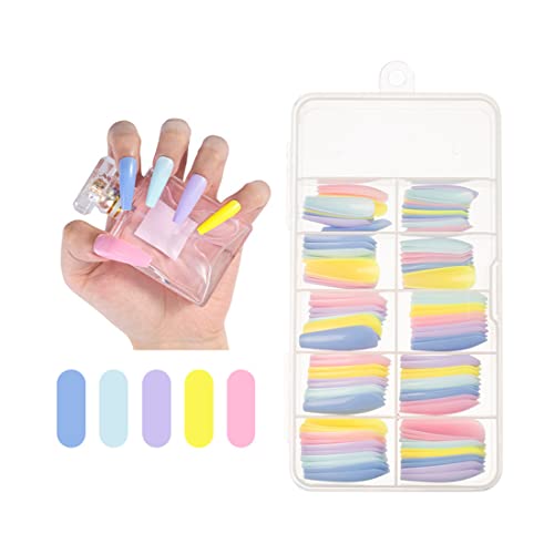 Zeayebsr 100 Unghie Finte Colorate Lunghe Unghie Finte Acriliche Finte Copertura Completa, Tinta Unita, Con Scatola, Per Salone Di Unghie, Signore, Estensioni Delle Unghie, Nail Art (Mix Caramelle)