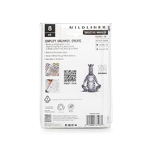 Zebra Pen Mildliner, Double Ended Highlighter, Broad and Fine Tips, Assorted Colors, 8 Pack, 78108