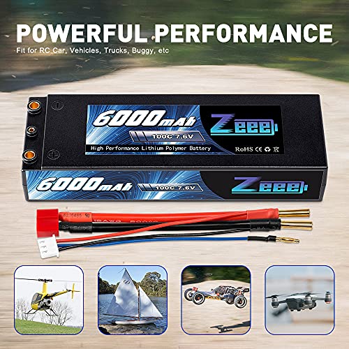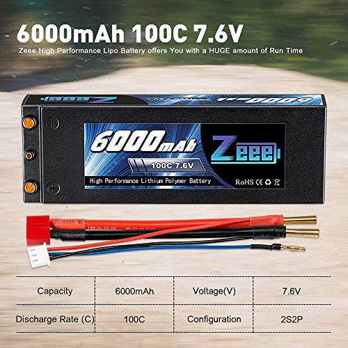 Zeee 2S Lipo Batteria 7,6V 100C 6000mAh HV Batteria RC Hardcase con Connectore 4mm a Deans T Spina per RC Evader BX RC Veicolo Auto LKW Truggy RC Nave RC Modells RC Hobby