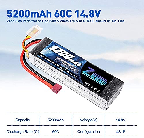 Zeee 4S Lipo Batteria 14,8V 60C 5200mAh Batteria RC con Connectore Deans T Spina per RC FPV Racing UAV Drone Evader BX RC Veicolo Auto LKW Truggy RC Nave RC Modells RC Hobby