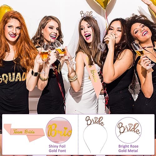 Team Bride Bracciali: Questo braccialetto per l'addio al celibato è realizzato in raso oro rosa di alta qualità, in tessuto morbido e confortevole, comodissimo da indossare al polso. Gli adesivi per tatuaggi in oro rosa offrono una decorazione personalizzata.