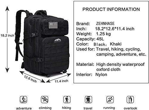 Sistema MOLLE - si prega di confermare il marchio ZEHNHASE al momento dell'ordine, Ci sono Numerosi punti di aggancio all'esterno dello zaino tattico per aggiungere sacchetti, progettati per essere utilizzati in combinazione con altre attrezzature, è possibile caricare tasche, borsa per l'acqua, kit di accessori e altro.