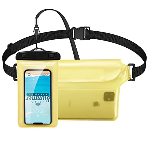 Zelaxy Borsa impermeabile per telefono e borsa Set da 2 pezzi Borsa asciutta con cintura in vita regolabile Borsa asciutta per telefono con fascia da braccio Spiaggia Kayak Nuoto Snorkeling -Giallo