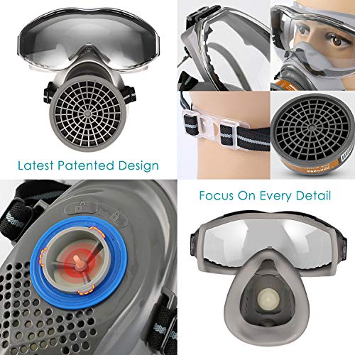 ✅ Doppia Protezione: il copertura faccia professionale Zelbuck utilizza un doppio sistema di filtrazione per bloccare fino al 96% dei vapori organici e del fumo, dei pollini, della polvere e di altre particelle presenti nell'aria. Gli occhiali offrono una protezione efficace da nebbia, sabbia, dossi e vento. È il dispositivo di protezione ideale nel tuo lavoro!