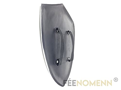 Materiale: giocattolo in schiuma ad alta densità (adatto per ogni tipo di pubblico) Dettagli: imitazione metallo con motivi colorati in rilievo. Dimensioni: lunghezza 51 cm x larghezza 36 cm. Accessori: attacchi in nylon sul retro dello scudo. Peso: 500 g.