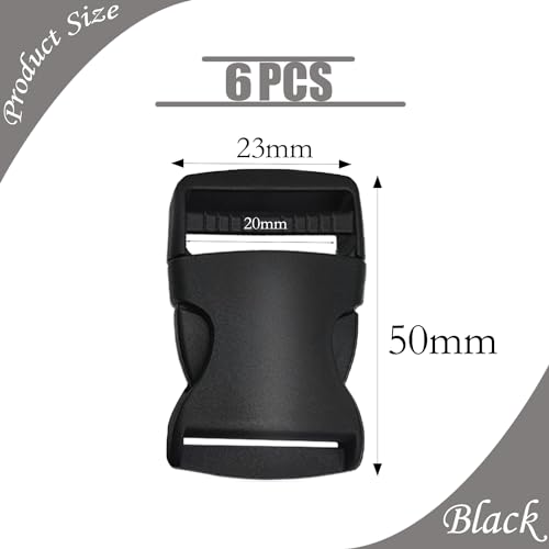 【La Confezione Include】 kit include una fibbia a sgancio laterale portacarte nera da 6 pcs con un diametro interno di 20 mm, colore: nero, puoi misurare prima la larghezza della tracolla. se la larghezza è compresa tra 17 e 20 mm, sarà la più adatta, può aiutarti a regolare la lunghezza del cinturino, allacciare il cinturino e la fibbia, è molto adatto per la tua vita quotidiana.