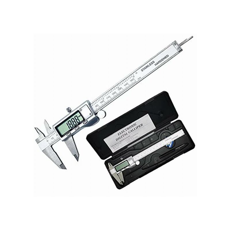 Zelotes - Calibro a corsoio digitale con ampio display per esterni, interni e profondità Funzione: Lavorazione e qualità eccellenti. Accensione automatica (movimento) e spegnimento automatico (ora). Solido e preciso. Buon meccanismo di scorrimento. Precisione di misurazione. Commutabile metrico (mm) / imperiale (inch). Vite di bloccaggio superiore. Azzeramento possibile in qualsiasi posizione. Lo calibro a corsoio è dotato di un display LCD ben leggibile. IP 54 impermeabile e antipolvere. Specifiche tecniche: ● Campo di misurazione: 0-150 mm. ● Display: schermo LCD. ● Potenza: CR2032 3 V. ● Materiale: acciaio inox. Precisione: ± 0,01 mm. Contenuto della confezione: 1 calibro digitale. 1 cacciavite. 2 batterie al litio CR2032 da 3 V (incluse)