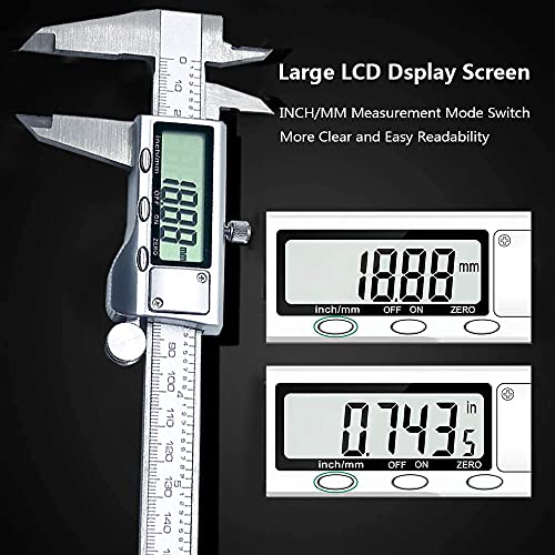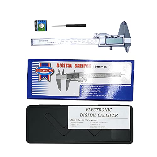 Zelotes Calibro a corsoio digitale, 150 mm/6 pollici, in acciaio inox, con batteria di ricambio e display LCD, alta precisione di misurazione (0,01 mm), per la misurazione di casa e industriale