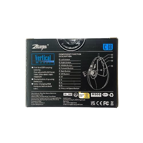 Zelotes Mouse Gaming Verticale con Joystick,10000 DPI Mouse Ergonomico,11 Pulsanti Programmabili, Mouse Ottico,Mouse da Gaming,Mouse con Filo USB Pro PC,Mac