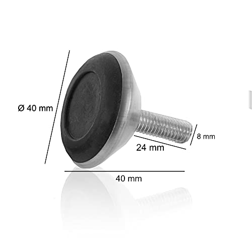 Zelsius Piedini per mobili Ø 40 mm (4 pezzi) | filettatura Ø 8 mm, M8 | argento, nero | piedini regolabili, piedini per mobili regolabili, piedini di ricambio per tavoli, piedini a vite