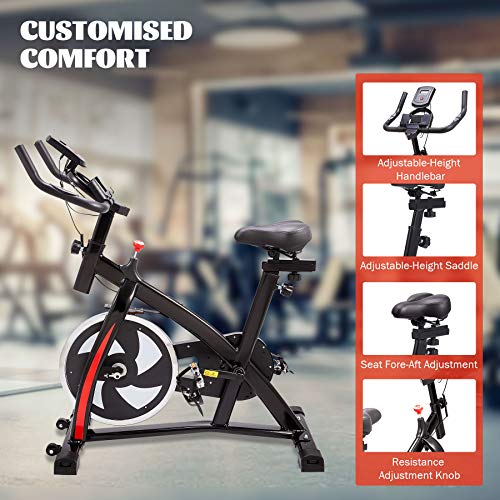 Z ZELUS Cyclette Fitness con Sedile e Manubrio Regolabili Bici da Spinning Professionale con Volano da 10KG Bicicletta per Allenamento a Casa con Supporto capacità 120KG