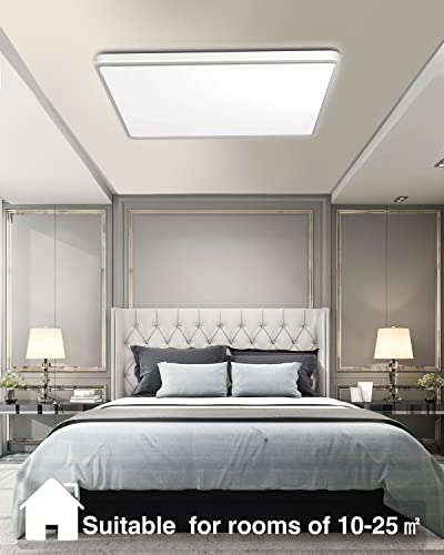 【Plafoniera a Risparmio Energetico ad Alta Luminosità】Plafoniera led soffitto moderna ha le prestazioni ad alta luminosità di 3240LM e la grande lampada quadrata a superficie luminosa con Ø30cm adotta un design a emissione laterale, che può illuminare più spazio, abbastanza per illuminare una stanza di 10-25 mq. La potenza di soli 36 W consente un risparmio energetico superiore al 90% rispetto alla tradizionale lampada a incandescenza equivalente a 300 W, risparmiando più bollette elettriche.