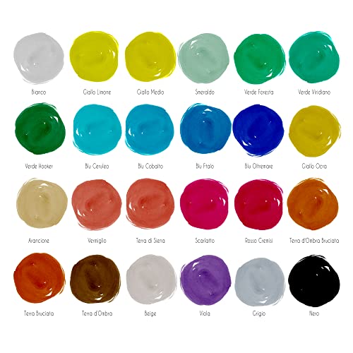 LIBERA LA TUA CREATIVITÀ - Il nostro set da 24 tubetti di colori ti permetterà di aggiungere colore alla tua vita: È ideale per gli artisti PRINCIPIANTI come per i pittori PROFESSIONISTI - La pittura può essere utilizzata per svariati progetti: tele di canapa, tela, carta, cartone per fare paesaggi, scene viventi e per ritratti - In più, si PULISCE FACILMENTE con acqua e sapone