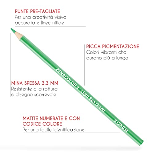 MATITE PER COLORARE MORBIDE, GRASSE E PRECISE - Le matite colorate per adulti Zenacolor hanno una mina con una punta di 3.3 mm a base d'olio per quaderni e libri da colorare per adulti o altro: che voi siate degli artisti professionisti o principianti, questi colori matita per grandi, vi sorprenderanno per la loro qualità