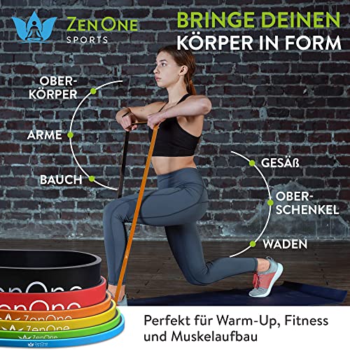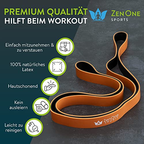 ZenBands Power Set Bande di Resistenza, Bande Elastiche per l'Allenamento a Casa, Resistance Bands, Fasce Elastiche per Pilates, Yoga e Fisioterapia incl. E-book, 1 pz - HEAVY (arancione)