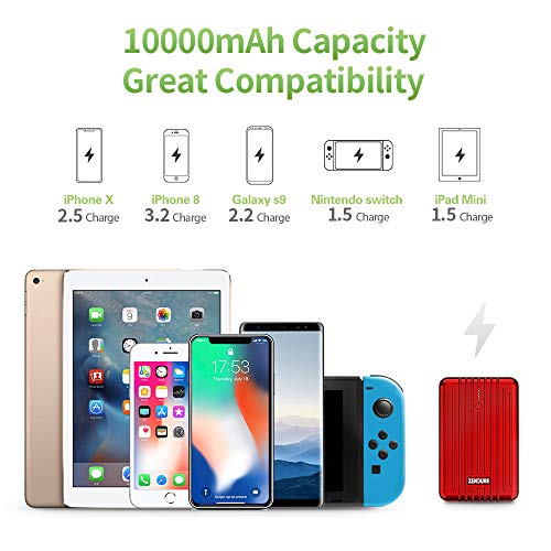 Zendure A3PD Power Bank con 10000mAh (compatta e Leggera, 2-Port 3 A Output Charger con 18W Funzione Quick Charging per iPhone, Tablet, Samsung e Altri, USB, USB-C, per Bagagli a Mano), Rosso