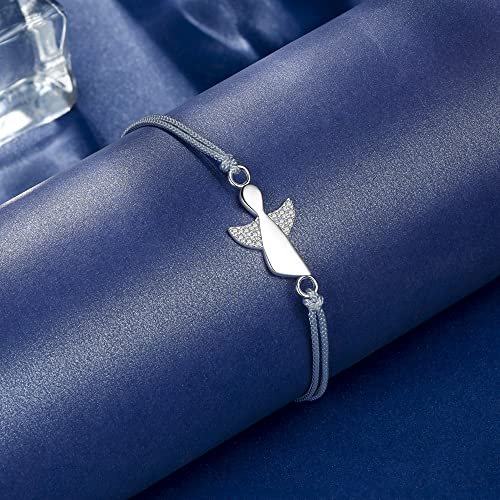 F.ZENI Braccialetti da donna angelo custode bracciali in argento 925 Corda fatta portafortuna braccialetti per ragazze 24cm regolabile lavoro manuale intrecciato