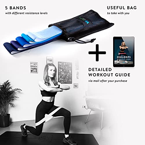 ZenLoops Set di Bande di Resistenza, Bande Elastiche con Livelli di Resistenza, Bande di Allenamento, Fasce Elastiche per Pilates, Yoga e Fisioterapia incl. E-Book, Guida con Esercizi e Borsa (Blu)