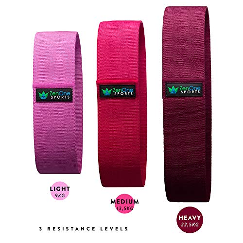ZenLoops Fabric Fasce Fitness Elastiche in Tessuto, 3 Elastici Fitness con Livelli di Resistenza, Bande di Resistenza per Gambe e Glutei, Bande Loop Bands, incl. Guida Workout & Borsa, 3 pz