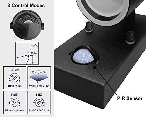 Zenon Lighting Collection Faretto da parete per esterni con sensore di movimento IP44 su/giù, acciaio INOX, colore: Nero opaco