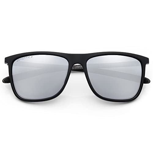 ZENOTTIC Occhiali da sole polarizzati uomo in fibra di carbonio staffa occhiali da sole quadrati guida pesca golf sport protezione UV400, Montatura nera argento lente a specchio