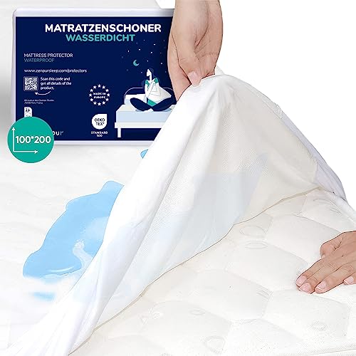ZenPur Coprimaterasso, prodotto nell'UE, certificato Oeko-TEX Standard 100, in cotone, impermeabile e durevole, protezione e comfort in uno (100 x 200 cm, Bianco)