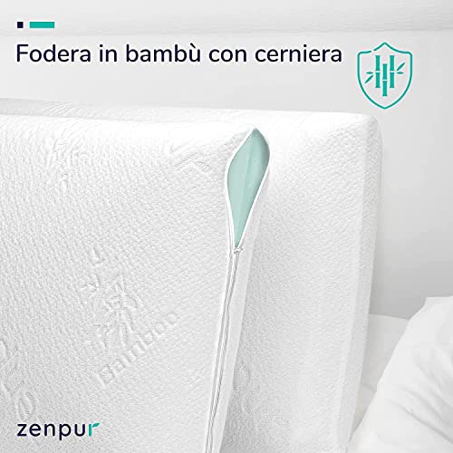 ZenPur cuscino memory, Cuscino ortopedico letto, fodera in bambù Prodotto in EU, Morbido, Comodo per chi dorme sul fianco e soffre di cervicale, Allineamento ottimale di collo e colonna vertebrale