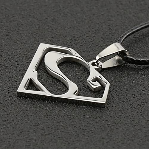 ✅ Elegante ciondolo a forma di uomo d'acciaio con lettera S di Superman. Materiale: acciaio inox. Altezza: 3,3 cm. Peso: 7 g. Viene fornito con un cordino in pelle nera di 45 cm + 5 cm.