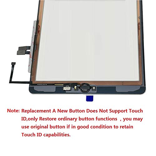 Nota: vetro schermo digitalizzatore completo montaggio completo per iPad 6a generazione 2018 con un pulsante di ricambio nuovo casa, sostituzione un nuovo pulsante non supporta Touch ID, solo ripristinare le normali funzioni del pulsante, è possibile utilizzare il pulsante originale se in buone condizioni per mantenere le capacità Touch ID.
